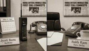 On a historic day in 1995, India’s first GSM mobile call connected New Delhi’s Sanchar Bhawan with Kolkata’s iconic Writers’ Building. Union Telecom Minister Sukh Ram dialed West Bengal Chief Minister Jyoti Basu, marking the moment India officially stepped into the era of mobile telephony.